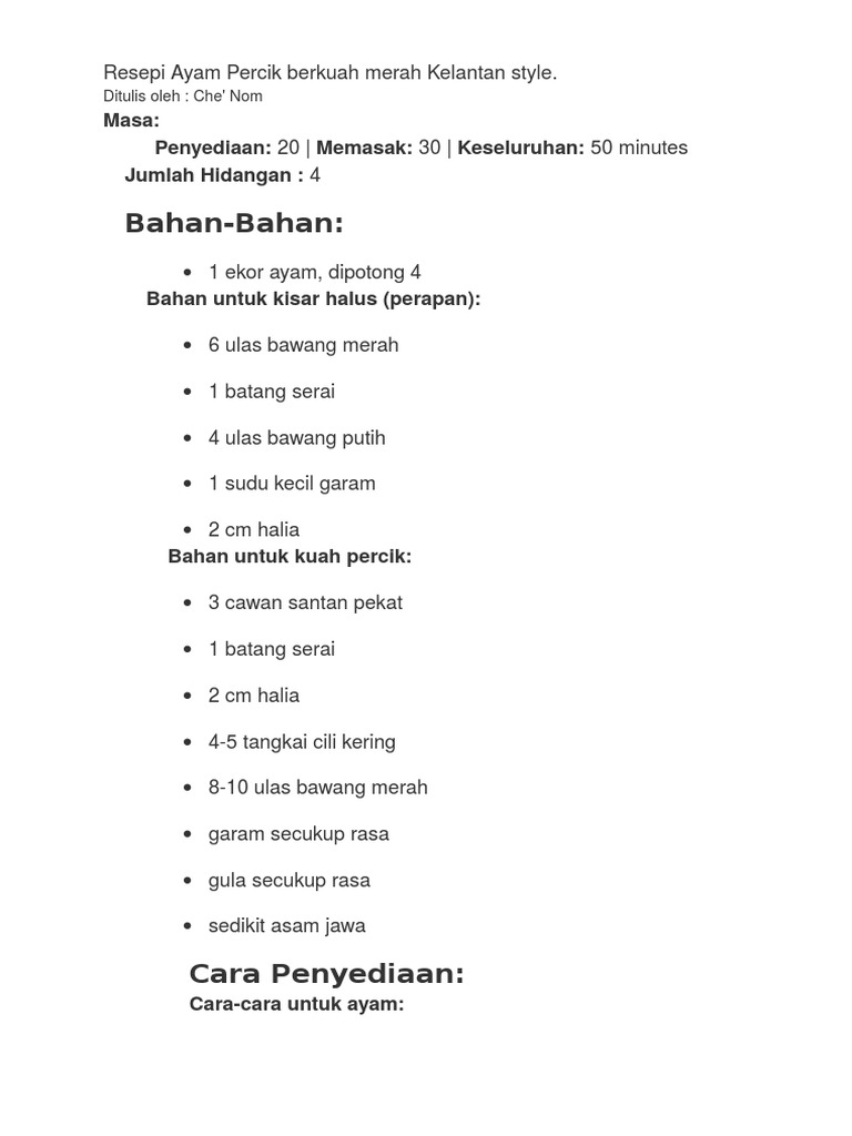 Resepi Ayam Percik Berkuah Merah Kelantan Style