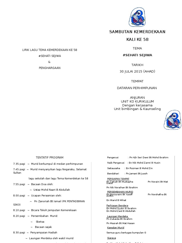 Doc Kertas Kerja Penghayatan Bulan Kemerdekaan Zuhairah Mahmud Academia Edu