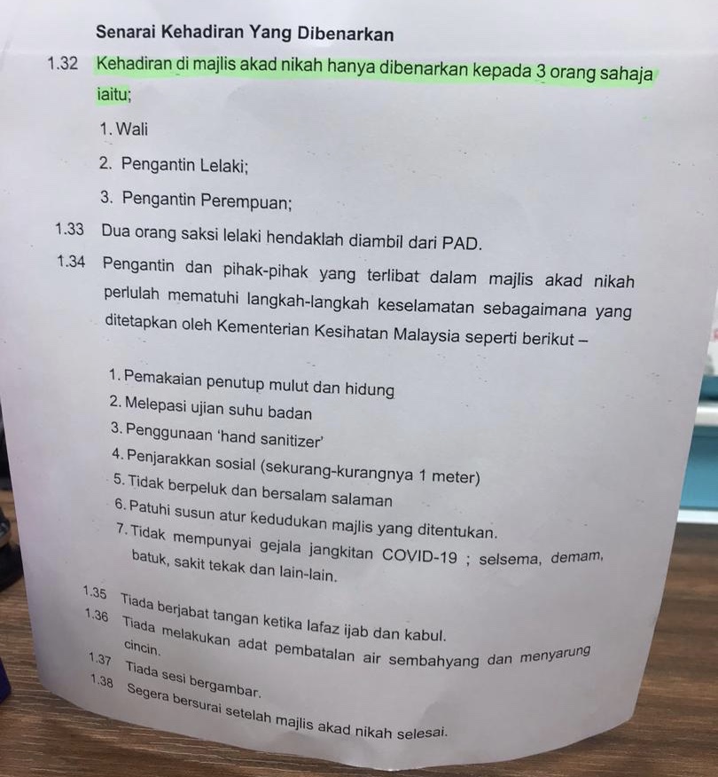 Jais Beri Kebenaran Berkuat Kuasa Isnin Depan Majlis Akad Nikah Dengan Kehadiran Fizikal