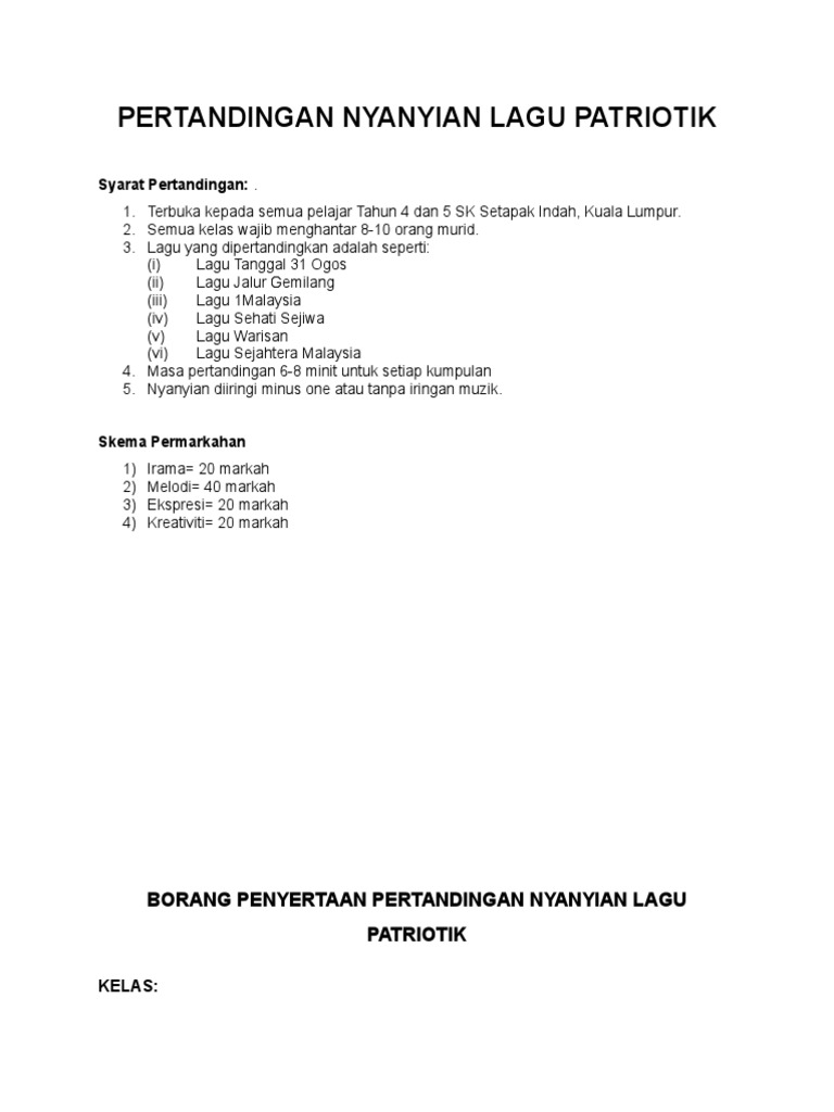 Borang Pertandingan Nyanyian Lagu Patriotik