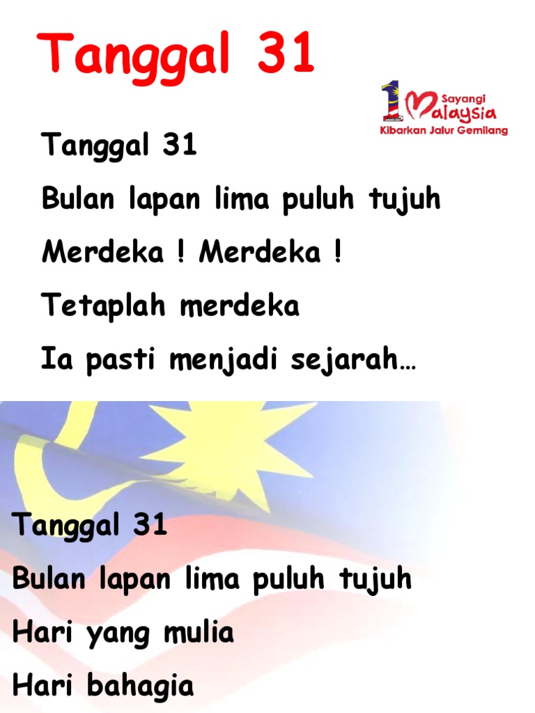 Lirik Lagu Tanggal 31 Surdiman Hari Kermerdeka