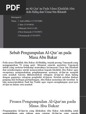 Sejarah Pengumpulan Al Quran Pada Masa Abu Bakar Ash Shiddiq Fitriani Nassyam Academia Edu