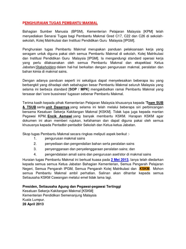 Https Www Moe Gov My Images Newportal Pengumuman Edaran Penghuraian Tugas Pembantu Makmal Di Sekolah Kolej Matrikulasi Ipgm Kampus Di Bawah Kpm Pdf