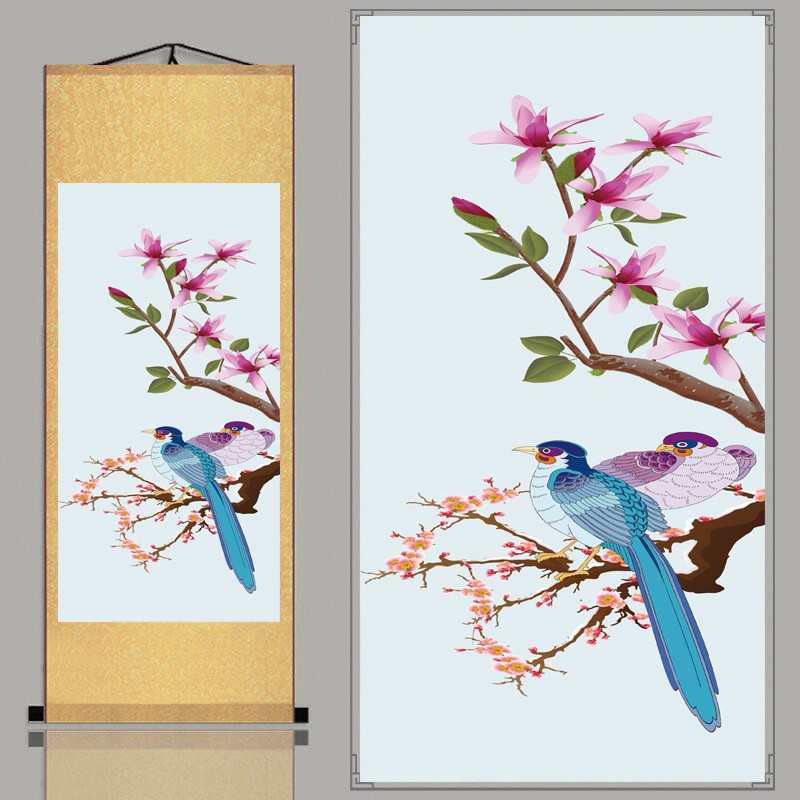 Lukisan Gulir Gulung Gantung Burung Walet Bunga Peony Dan Anggrek 30x80cm Lg29 Lg36 Shopee Indonesia