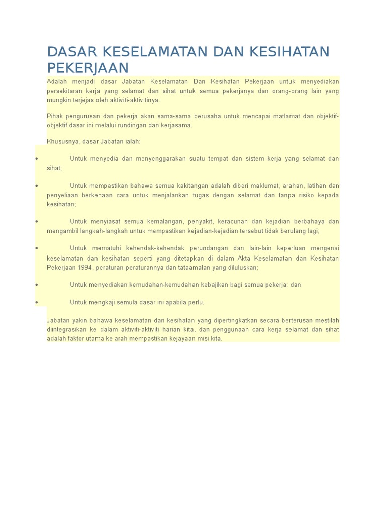 Dasar Keselamatan Dan Kesihatan Pekerjaan