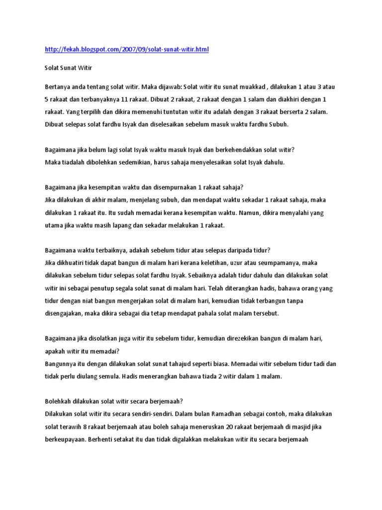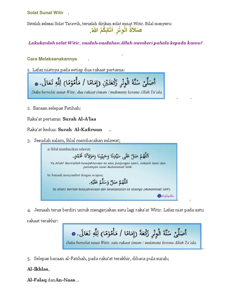 Cara Solat Witir Yang Mudah Dari Jakim Bacaan Ringkas Siraplimau Com Kata Kata Motivasi Membaca Sembahyang