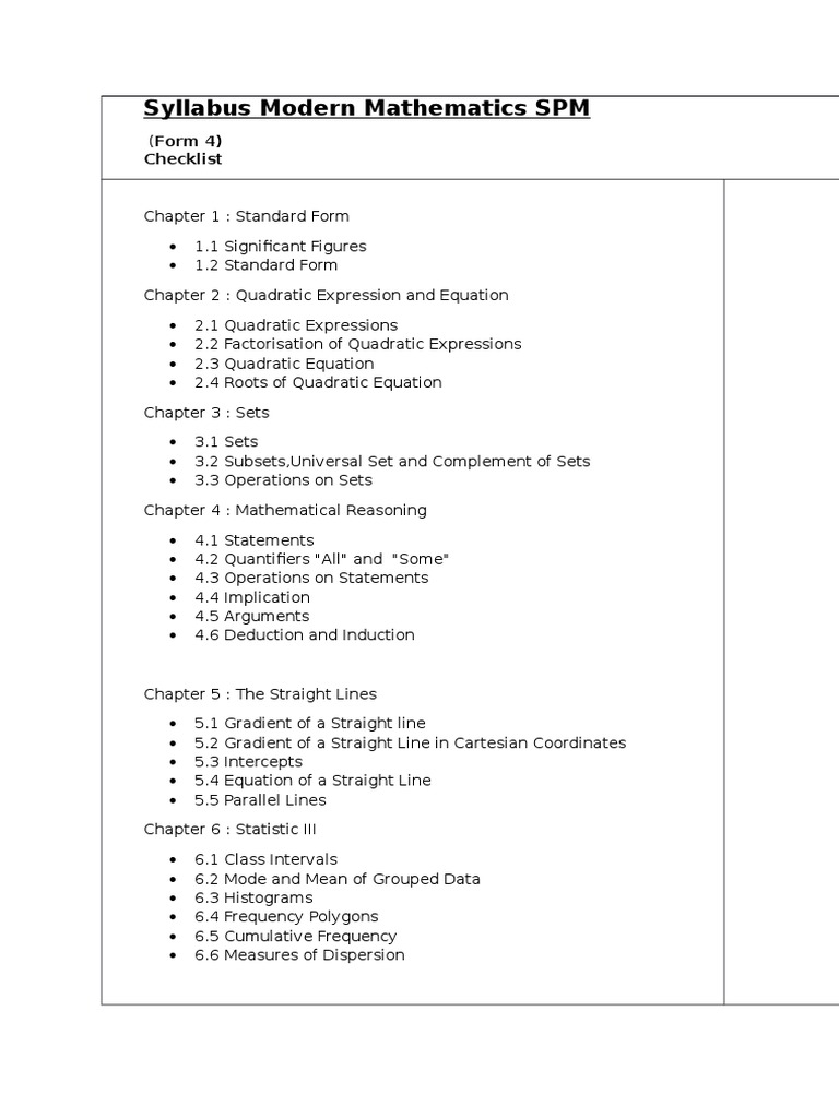Syllabus Modern Mathematics Spm