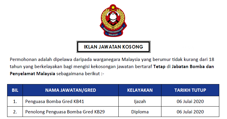 Permohonan Online Jawatan Kosong Di Jabatan Bomba Dan Penyelamat Malaysia 230 Kekosongan Seluruh Malaysia