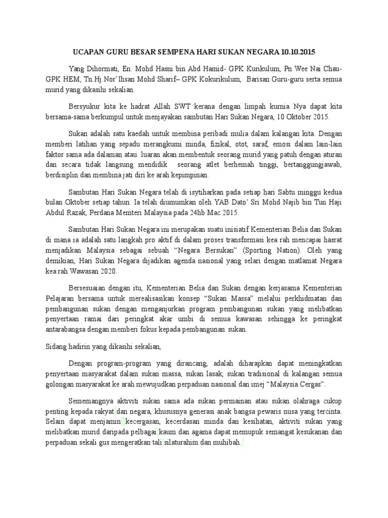 Doc Ucapan Perasmian Sukan Kamal Khalip Academia Edu