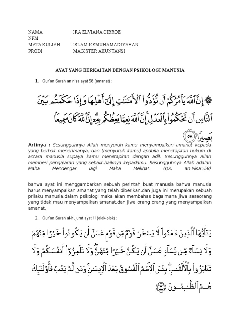 Apa Saja Hukum Tajwid Yang Ada Pada Surat An Nisa Ayat 58 Brainly Co Id
