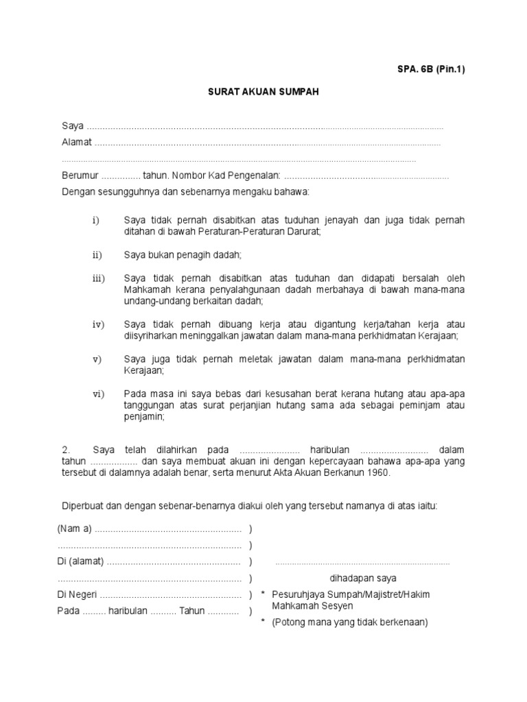 Contoh Surat Akuan Sumpah Berkanun Akta 1960 Free Download Images