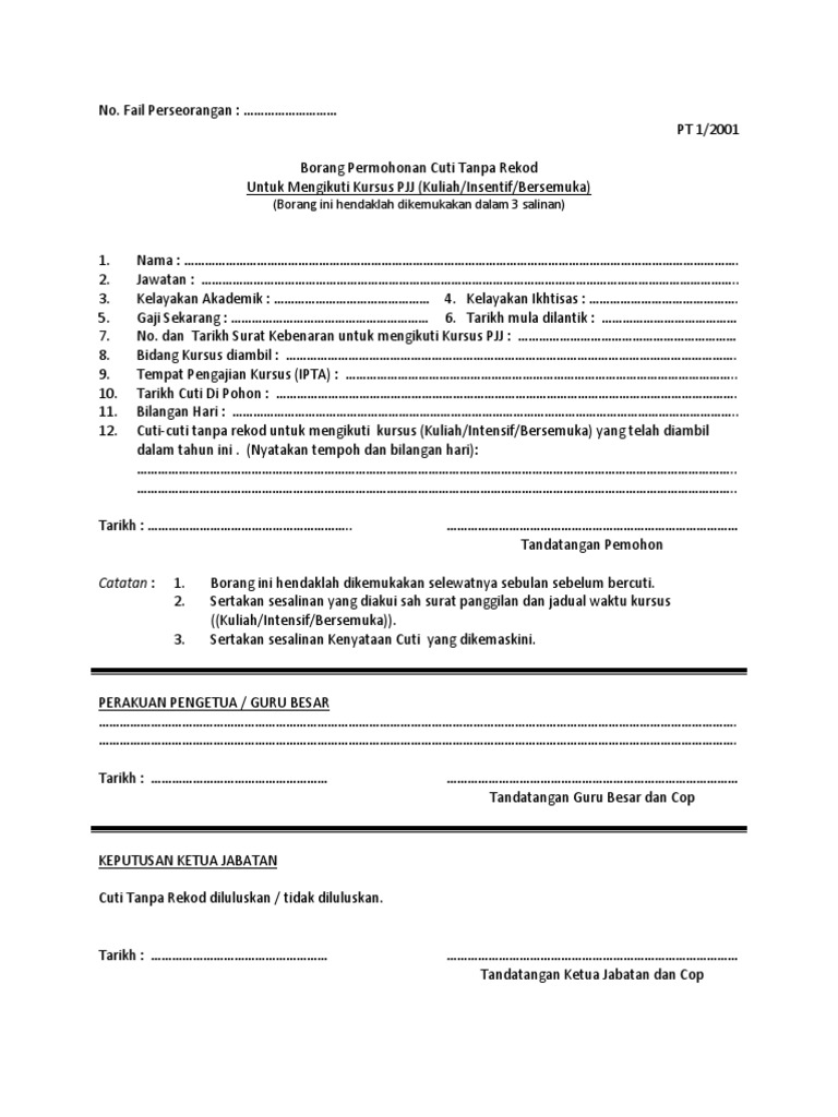 Borang Cuti Tanpa Rekod Pjj Docx