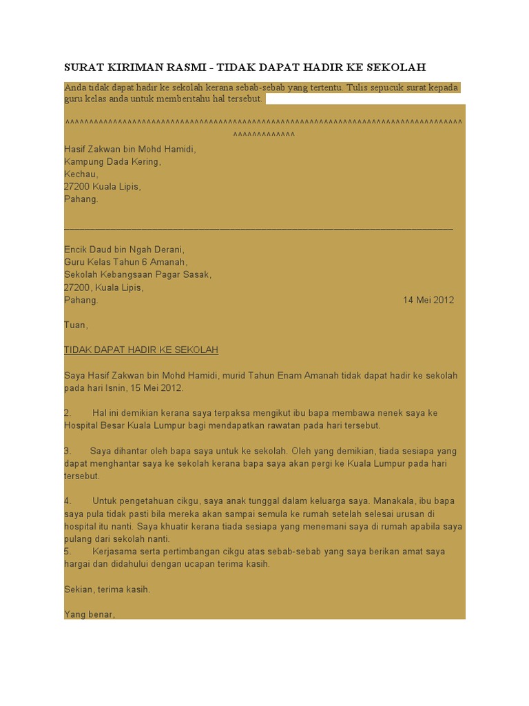 Download 6 Contoh Surat Rasmi Tidak Hadir Sekolah Kuliah Melur Net