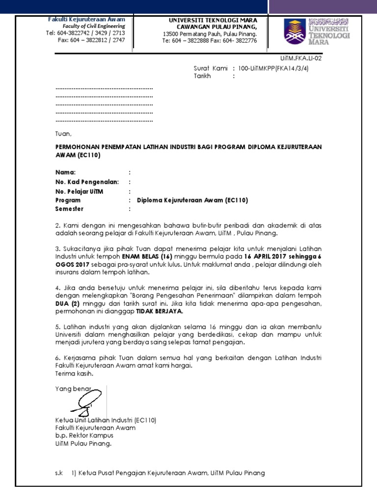 Contoh Surat Rasmi Permohonan Latihan Industri Surat Rasmi M