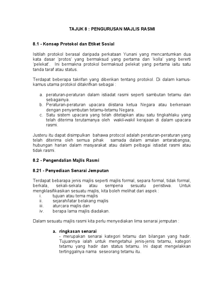 Tajuk 8 Pengurusan Majlis Rasmi Protokol