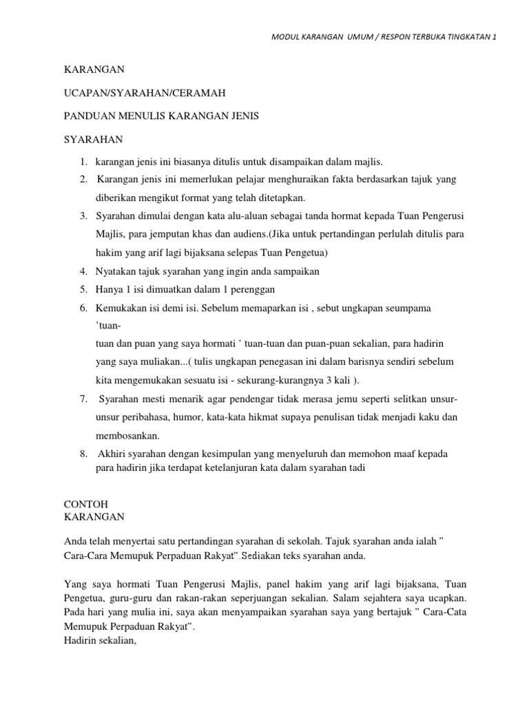Modul Karangan Tingkatan 1 2 Docx Document
