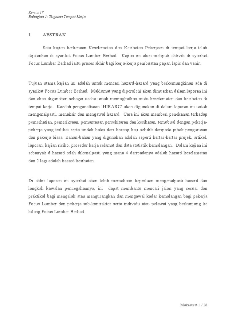 Syarikat Contoh Laporan Kemalangan Di Tempat Kerja