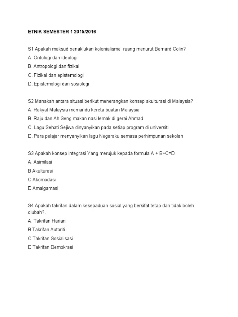 Contoh Soalan Hubungan Etnik Bab 5 Terengganu Z