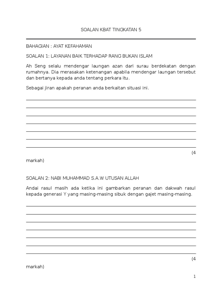 Soalan Kbat Tingkatan 5