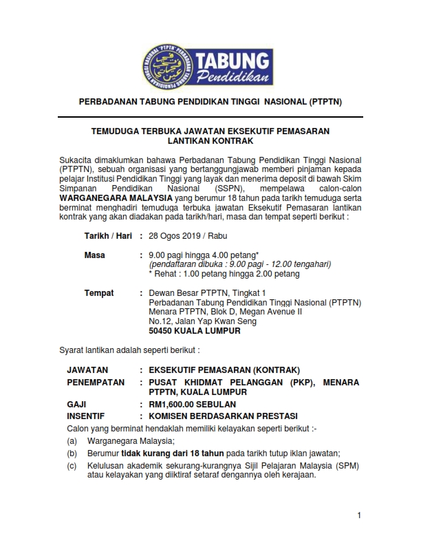 Temuduga Terbuka Di Perbadanan Tabung Pendidikan Tinggi Nasional Ptptn Temuduga Terbuka Di Perbadanan Tabung Pendidikan Tinggi Nasional Ptptn Credit To Ww